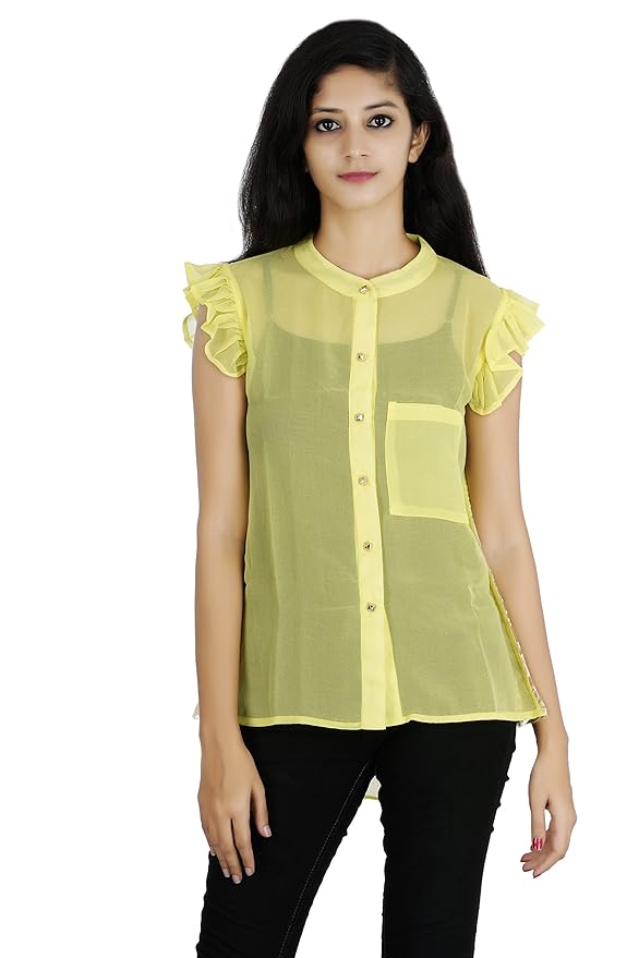 Buy Goswankyy Girls Lemon Yellow Georgette Shirt Top Yellow Petal Sleeve Shirt Top For Women At Amazon In